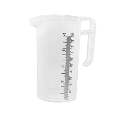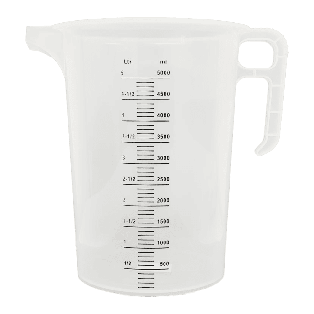 Heavy-duty HDPE plastic measuring jugs.