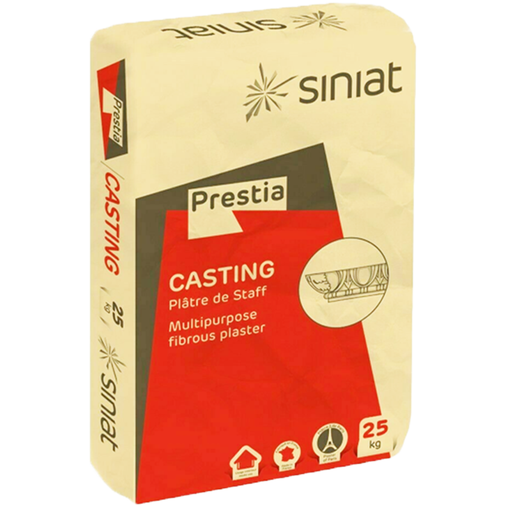 Produced from top-grade calcined gypsum and mined in the Paris area, Prestia Casting Plaster is an unformulated fine plaster of Paris. Adhering to EN13279-1 Building Plasters Standard, this product provides a quick set time and is ideal for decorative and fibrous moulding work.