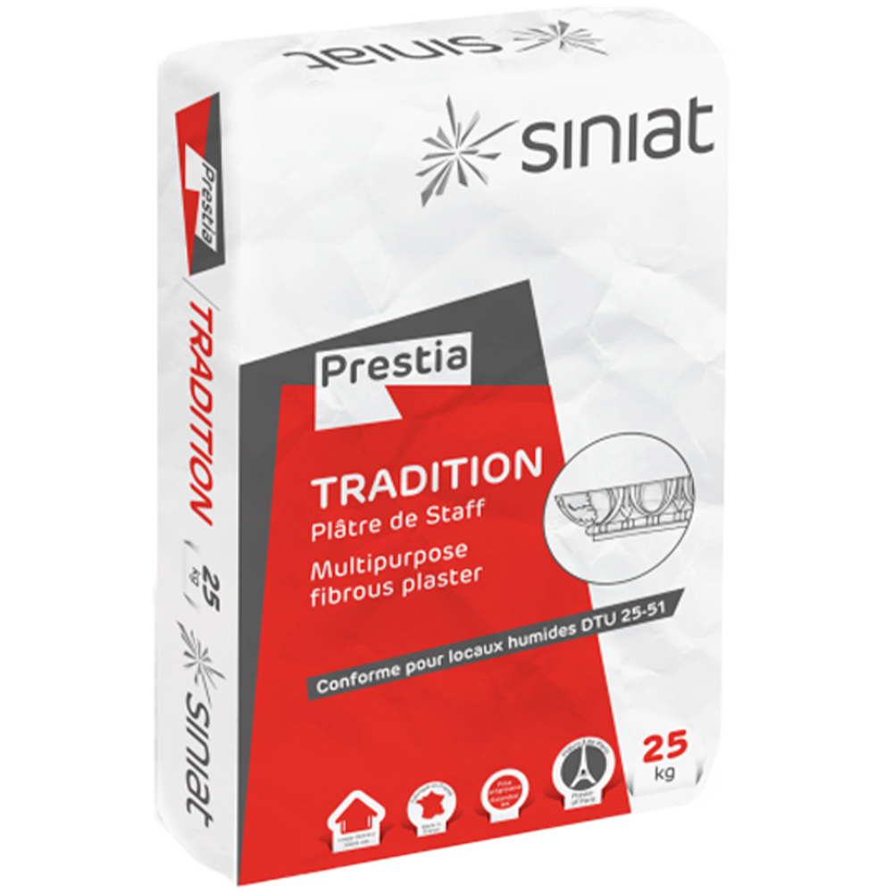 Prestia Tradition is another good quality plaster from the Siniat range, chosen mainly for its hardness and durability in the manufacture of large cornices and ceiling centres etc. Slower setting but harder than basic casting plasters.