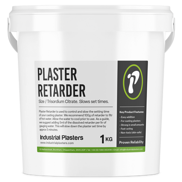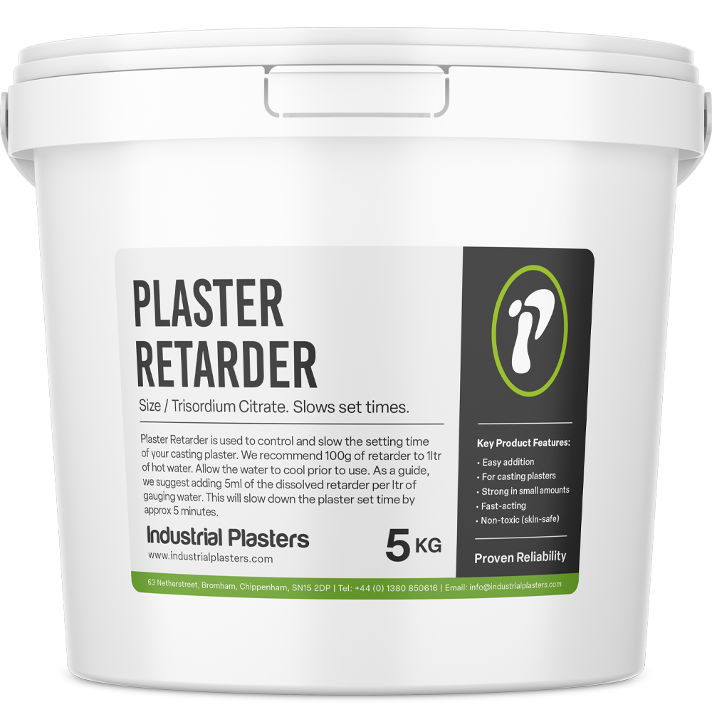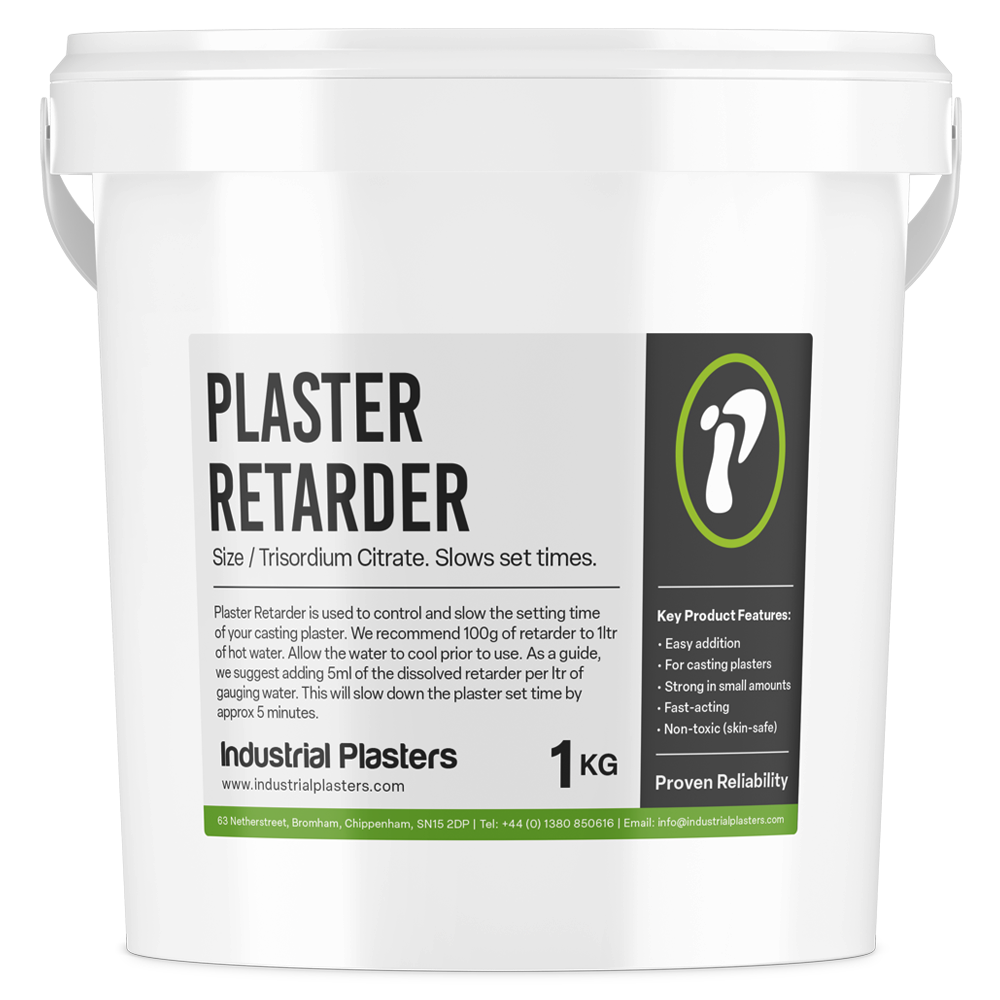 Plaster Retarder is a safe-to-use granular material called Trisodium Citrate, which needs to be dissolved in water and used as a concentrate that is added to the gauging water before mixing in the plaster powder. We recommend 100g of Retarder to 1ltr of hot water and allow to cool before use. This concentrate should then be used to add to your gauging water. As all plasters have different set times, it is difficult to be specific about how much to add and how much it will slow down the plaster. As a guide, we suggest adding 5ml of the dissolved retarder per litre of gauging water, this will slow down the plaster set time by about 5 minutes.