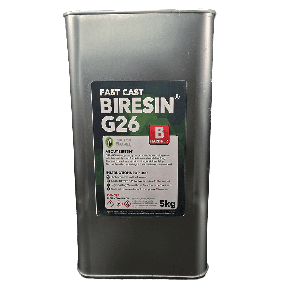 Biresin G26 is a high-quality, beige two-part polyurethane fast-cast resin kit widely used for pattern and model making. It has a simple-to-use 1:1 mix ratio. This resin has a low viscosity, with good flowability. This enables the capturing of fine details from your mould. Although G26 is pre-filled, it can be filled for some applications.