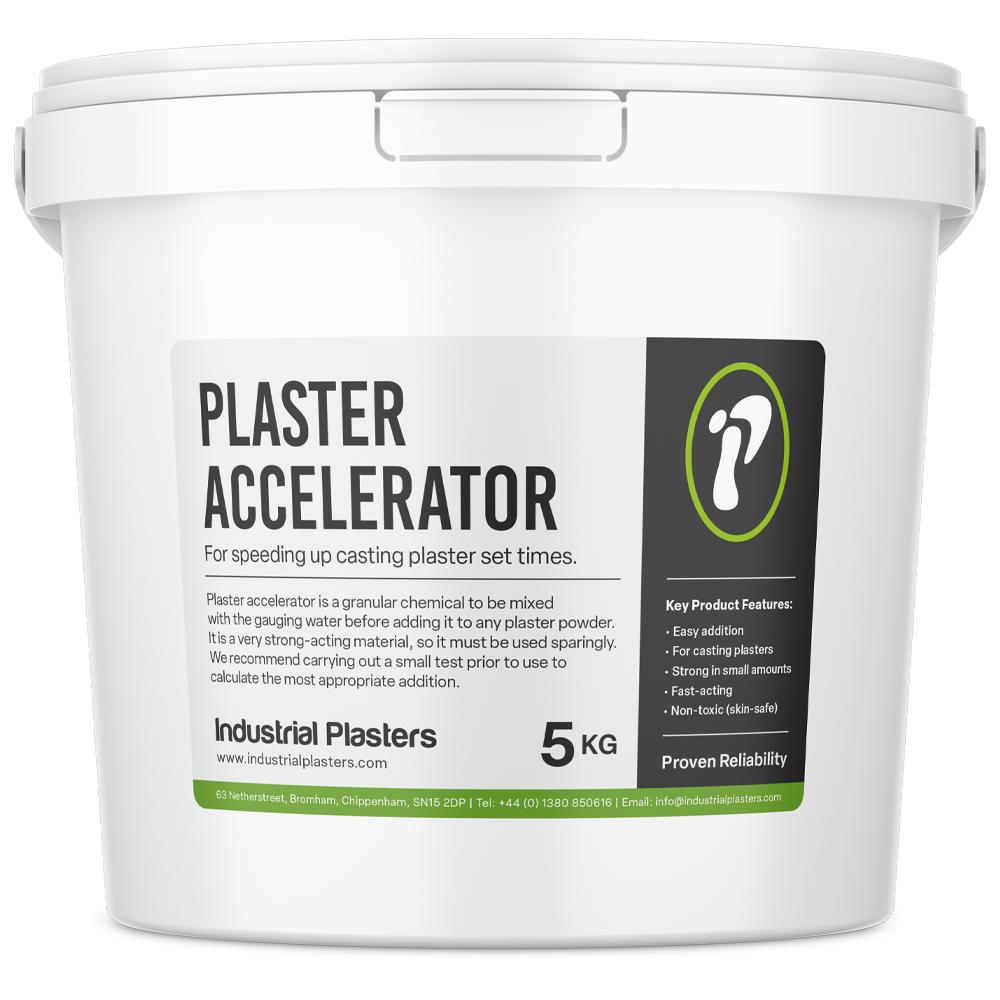 Plaster Accelerator is a granular chemical to be mixed with the gauging water before adding it to plaster powder. Because of the vast variation in setting times of our plasters, it is challenging to make a firm recommendation for dosage, however, it is a very strong-acting material, so it must be used sparingly. We strongly recommend a small test being carried out to ascertain and calculate the most appropriate addition.