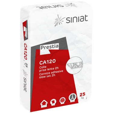 Prestia CA120 est une colle idéale pour la fixation d'enduits décoratifs, offrant une adhérence au contact exceptionnelle. Elle convient parfaitement à la pose de moulures, corniches, rosaces et autres éléments décoratifs. Elle est également idéale pour le rebouchage, le jointoiement et les finitions.