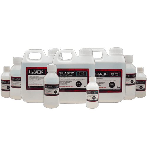 L'agent de durcissement Silastic (catalyseur) convient aux silicones à polymérisation par condensation Silastic. Il est disponible en 3 types et vitesses (détaillés ci-dessous) et s'ajoute au silicone de base à raison de 5 % en poids. Sa durée de conservation est de 9 mois.